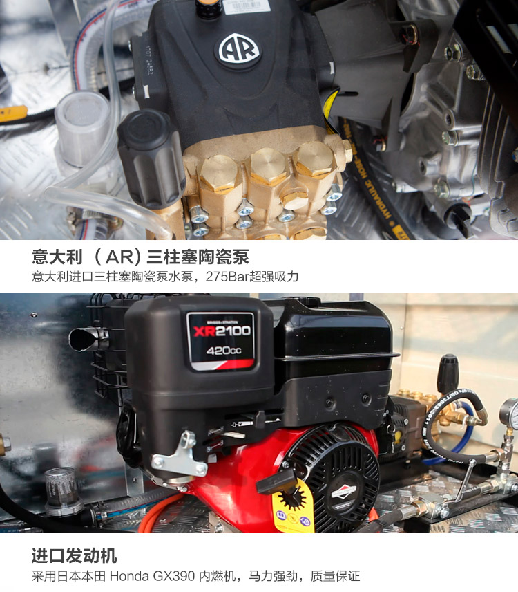 采用日本本田Honda GX390内燃机,马力强劲,质量保证